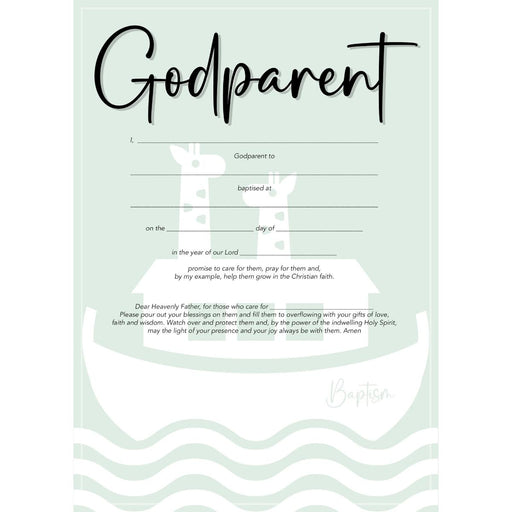 Godparent Certificate - Ark Design With a Godparent Prayer, Pack Of 10 A5 Size