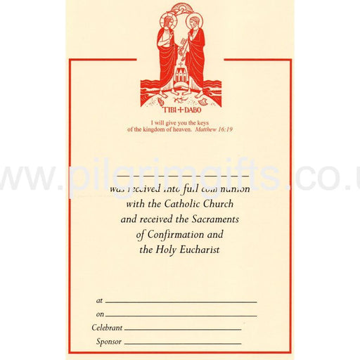 £6.99Text on Front: (Name of Person).........Was into full communion with the Catholic Church and received the Sacraments of Confirmation and the Holy E...