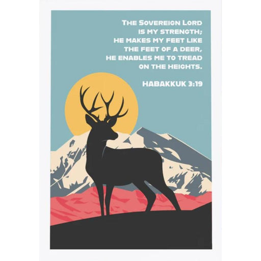 from £9.99Christian themed Ready to Frame art prints. Bold, modern colourful poster. Habakkuk 3:19 poster. "The sovereign Lord is my strength; He makes my fe...