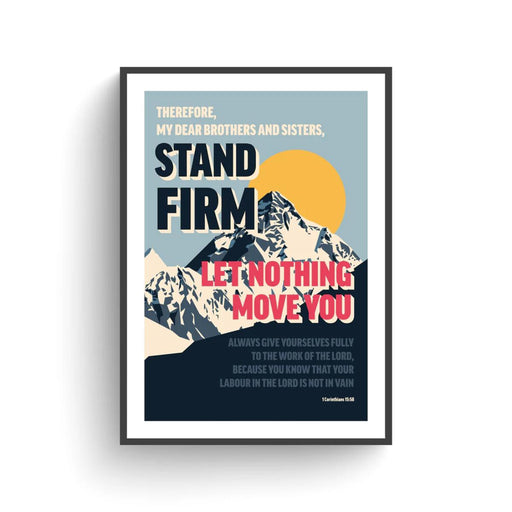 from £9.99Christian themed Ready to Frame art prints. Bold, modern colourful poster. 1 Corinthians 15 verse 58 "Therefore, my dear brothers and sisters, stan...