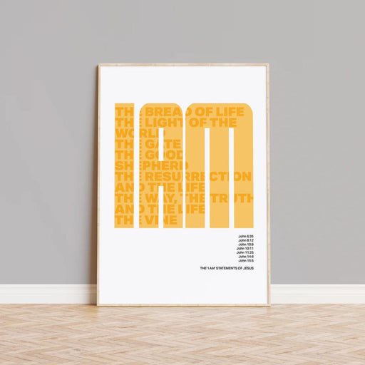 The 7 'I am' Statements Of Jesus - Yellow Unframed Poster Print Available In Two Sizes - A4 and A3