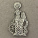 Saint Catherine of Alexandria was one of the most popular of medieval saints. She was martyred in the 4th century for her Christian belief by order of the Emperor Maximinus. According to legend she was condemned to die on a wheel, but, at her touch, this instrument of torture was miraculously destroyed. She was then beheaded with a sword, after which her body was miraculously transported to mount Sinai, where later a church and monastery were built in her honour. The badge depicts the saint holding her emblems of a wheel and sword.